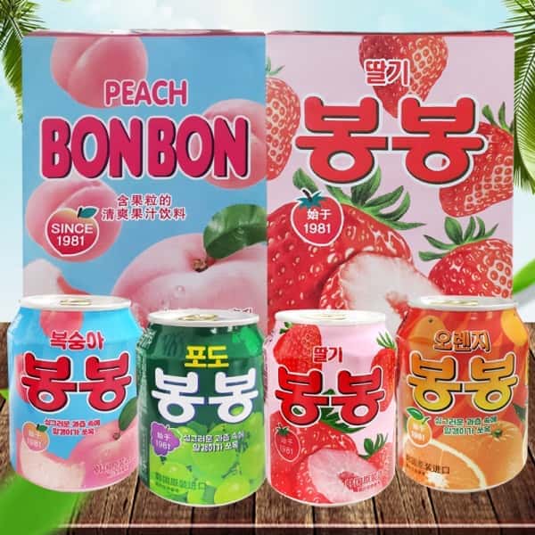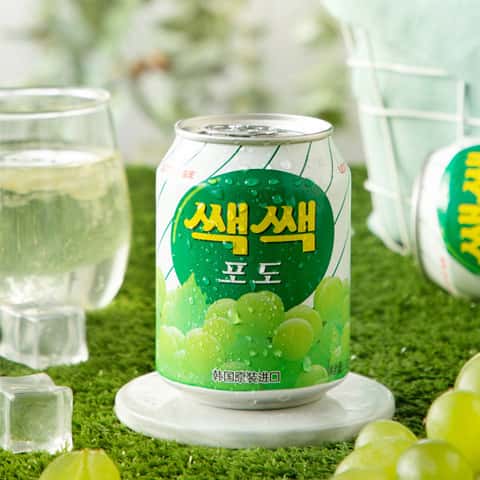 韩国进口网红饮料海太桃汁草莓葡萄果粒果汁果肉238ml/罐休闲饮品