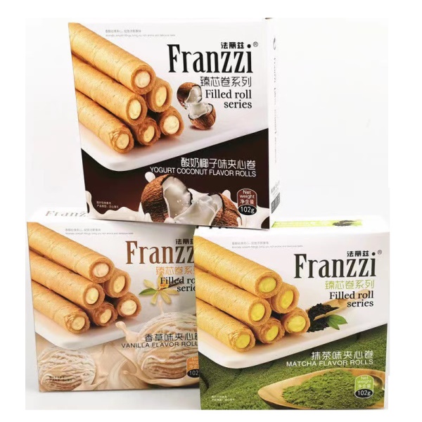 法丽兹102g夹心曲奇饼干抹茶椰子蛋卷网红休闲小吃办公室零食盒装