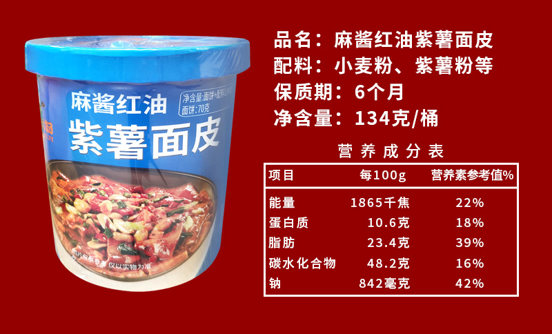 麻酱红油紫紫薯面皮134g/桶
