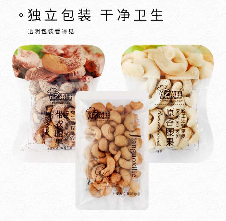包邮亿莱旺带衣腰果原味腰果炭烧腰果袋装节礼坚果炒货零食礼包