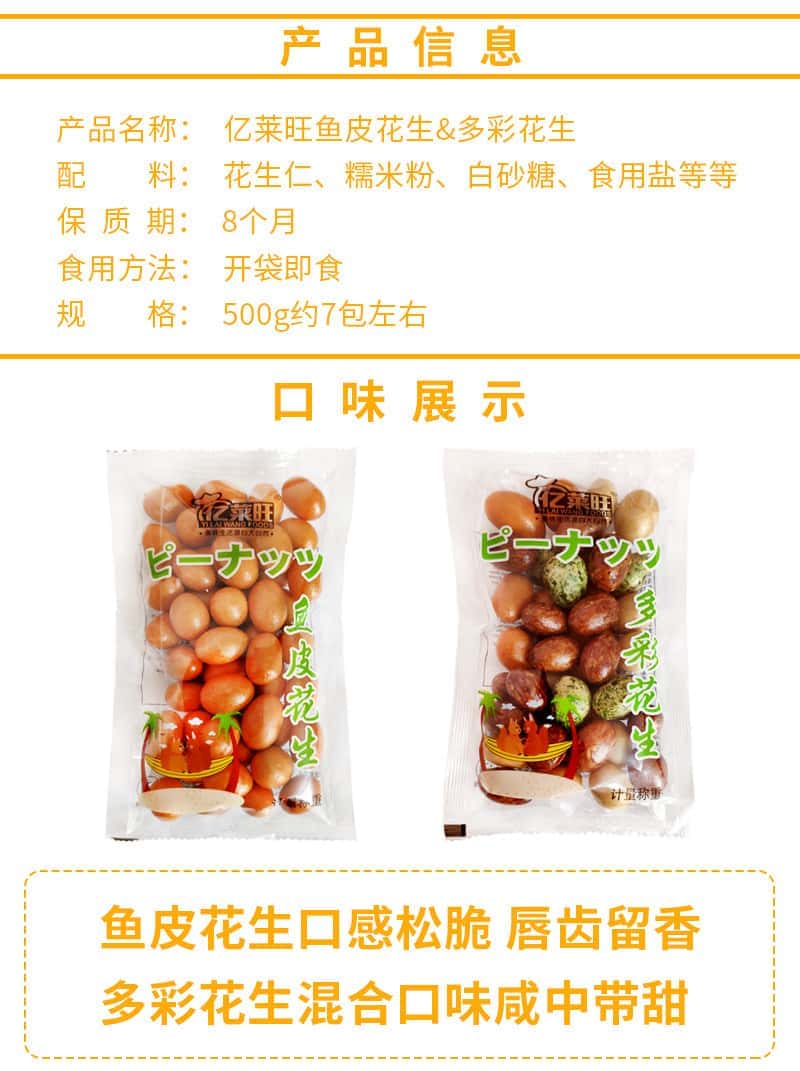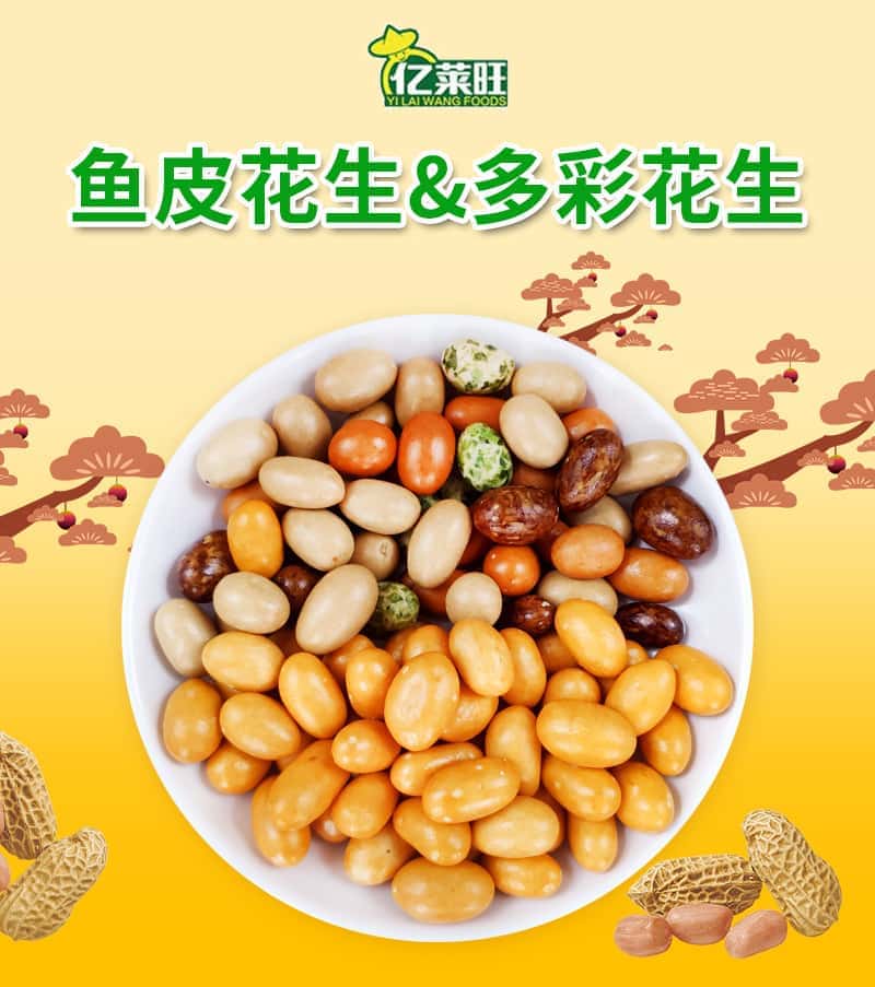 包邮亿莱旺多彩花生鱼皮花生脆皮花生裹衣花生散称小包装零食炒货