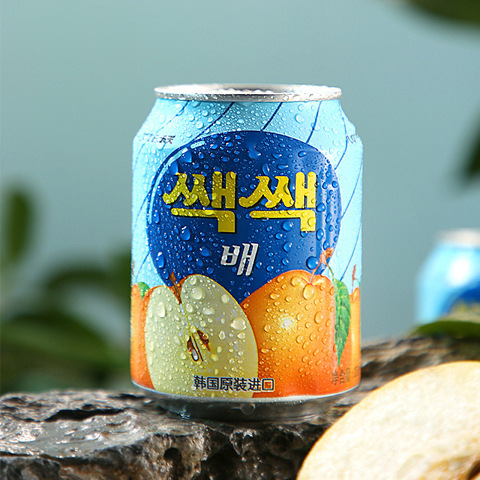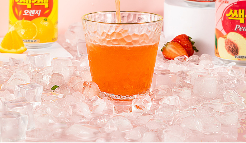 韩国进口网红饮料海太桃汁草莓葡萄果粒果汁果肉238ml/罐休闲饮品