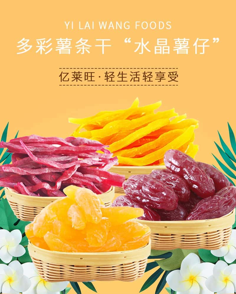 亿莱旺多彩水晶薯仔红薯干紫薯仔蜜饯果脯类零食番薯干地瓜干薯条
