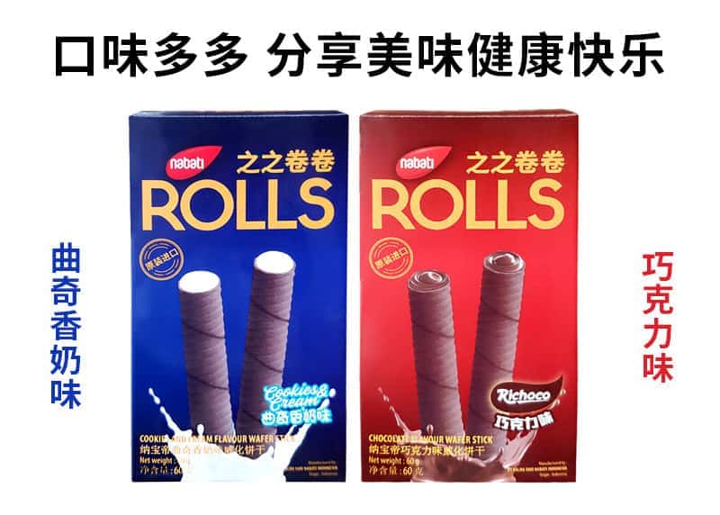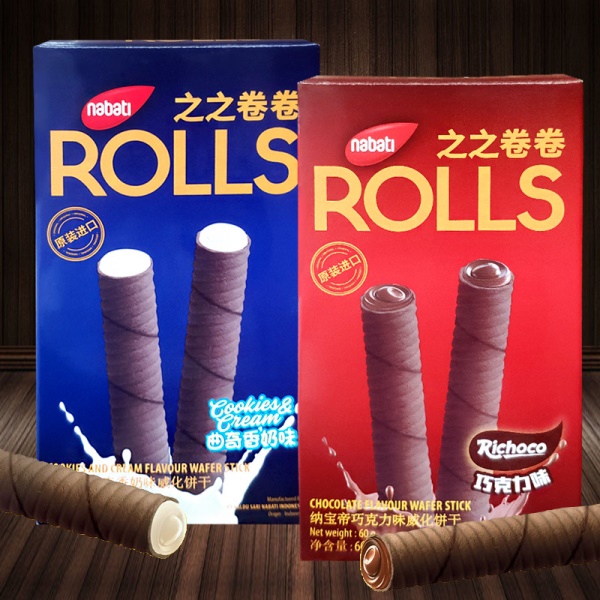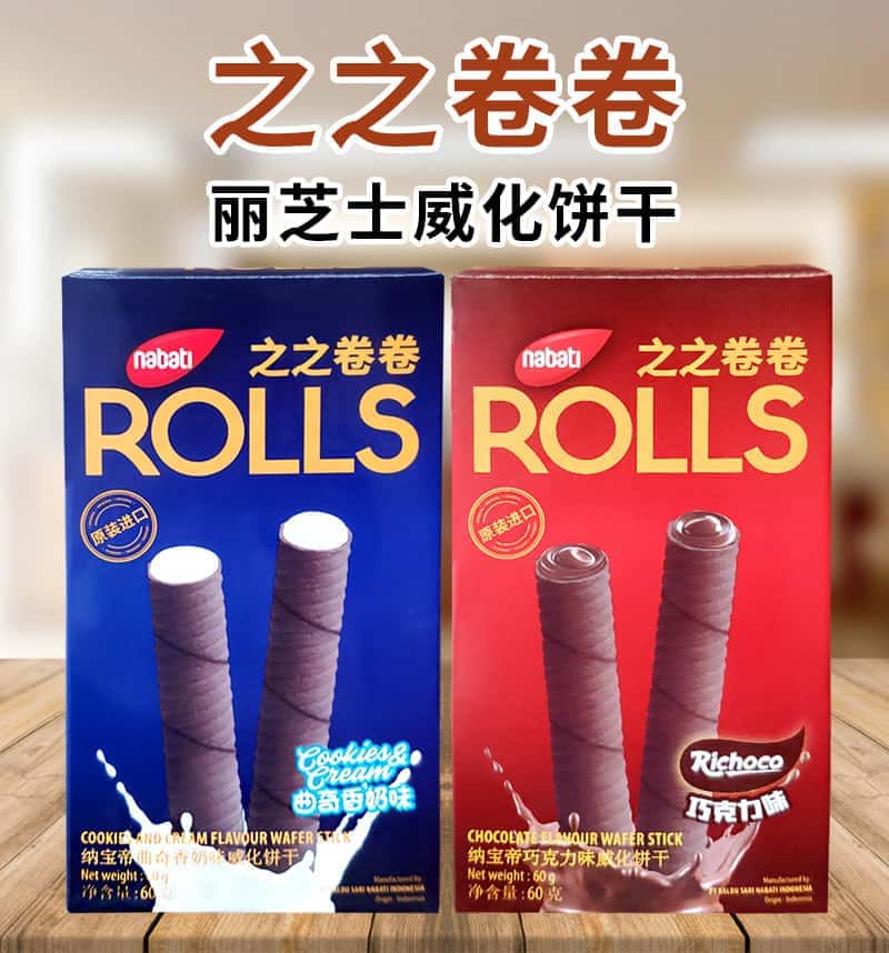 印尼进口丽芝士纳宝帝之之卷卷威化醇香蛋卷饼干60g 休闲零食品