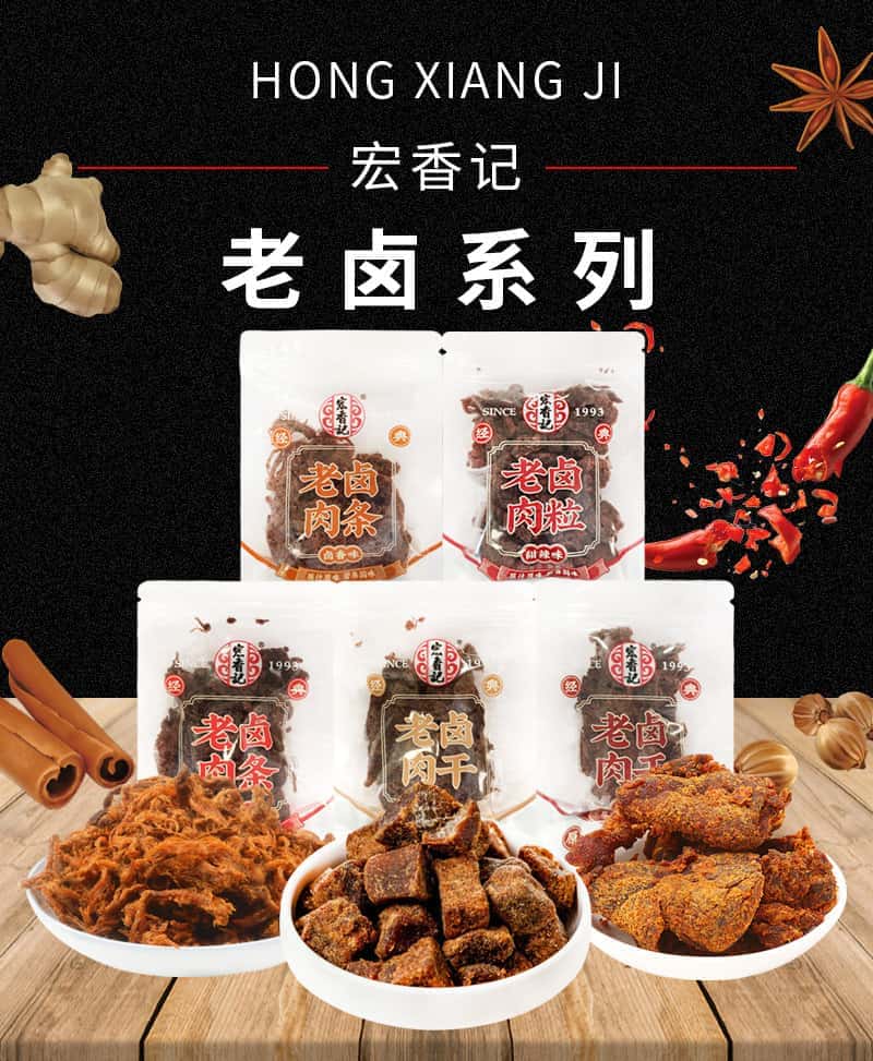 包邮宏香记老卤系列老卤肉干肉粒肉条卤香五香甜辣肉干零食小吃