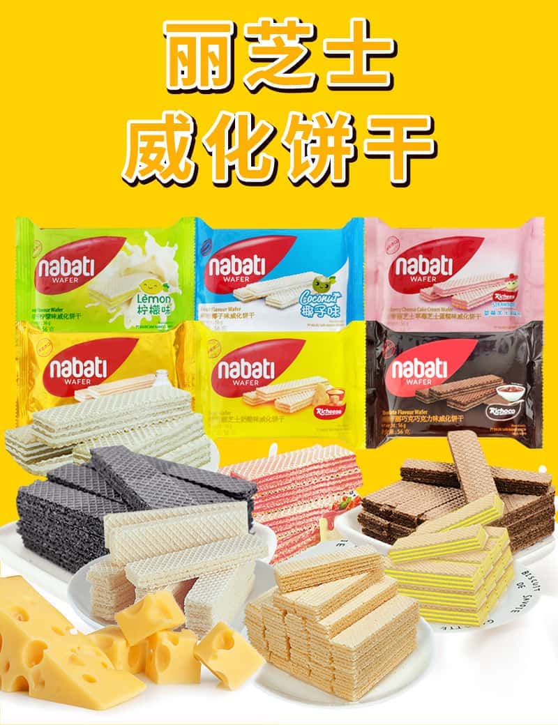 印尼进口丽芝士nabati奶酪芝士威化玉米夹心卷饼干全品相批发