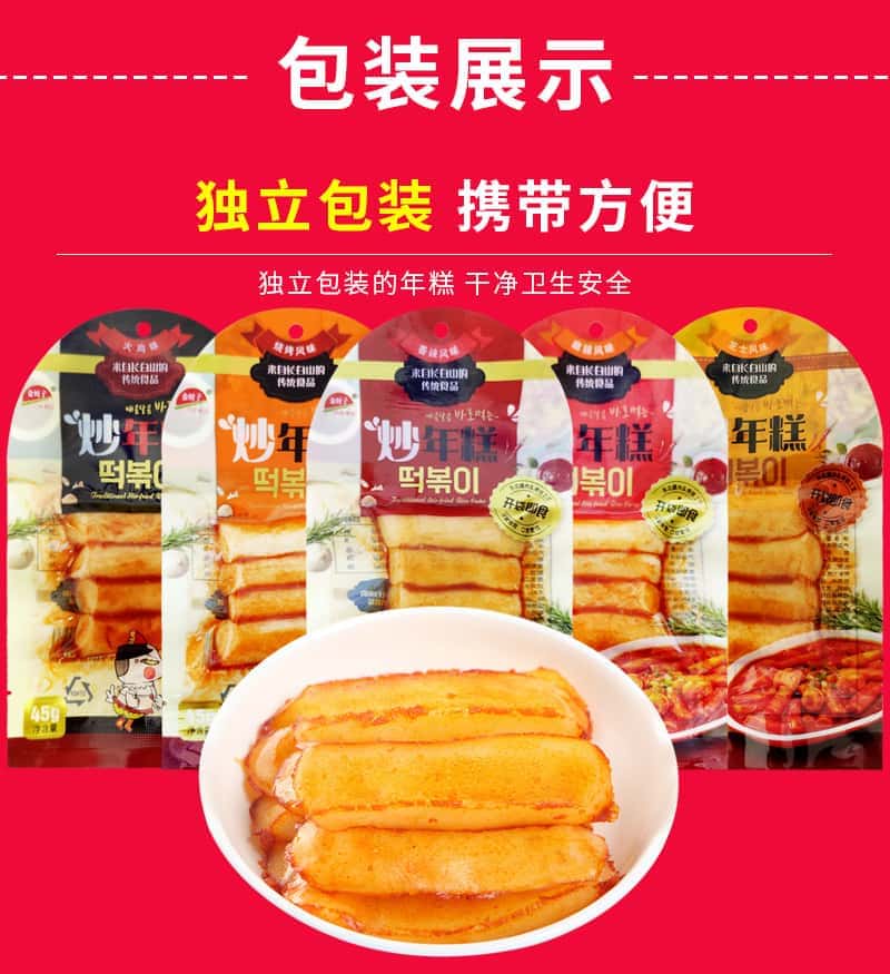 包邮金时子即食炒年糕45g*25袋/盒韩国年糕条网红小吃韩式年糕糍