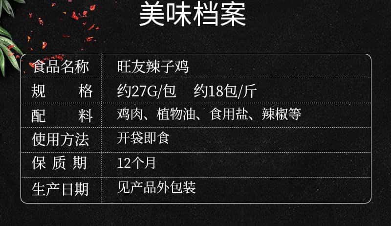 包邮旺友辣子鸡鸡丁重庆风味麻辣香辣下酒菜小吃零食鸡肉非素肉独