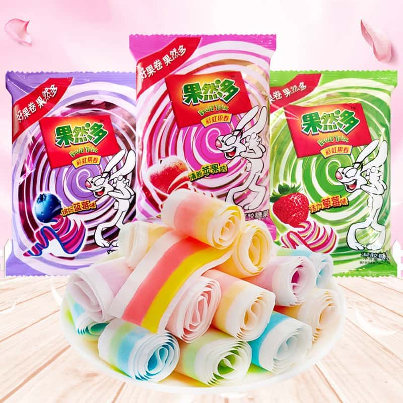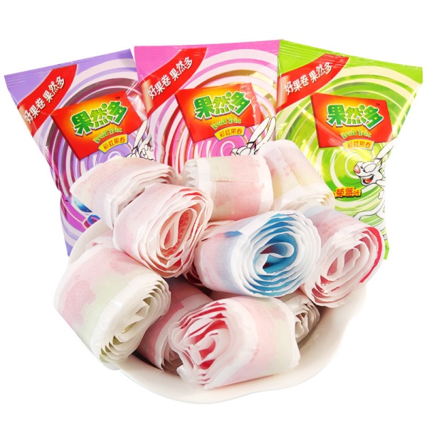 果然多彩虹果卷360果汁软糖水果味卷纸糖趣味童年怀旧零食批发
