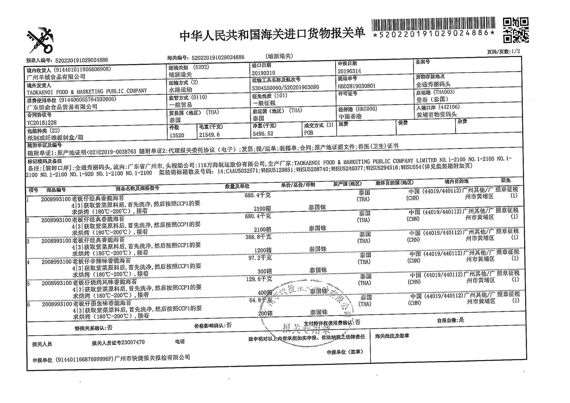 5月泰国进口老板仔海苔卷27g盒香脆紫菜原味脆海苔儿童食品 现10
