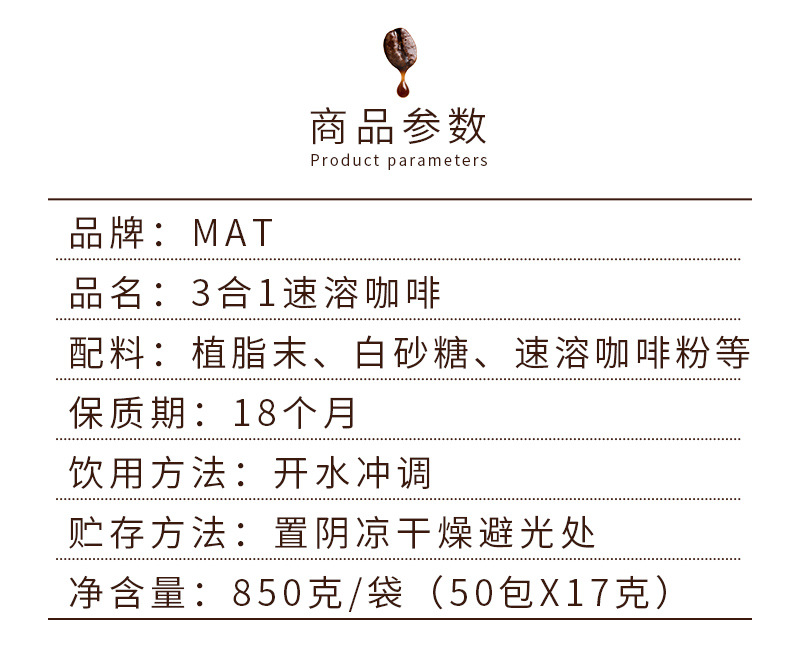 MXT三合一速溶(猫屎咖啡味)850克(17G*50条)小条袋装特濃