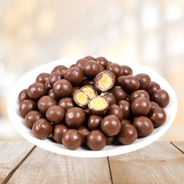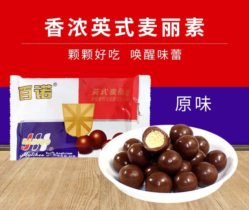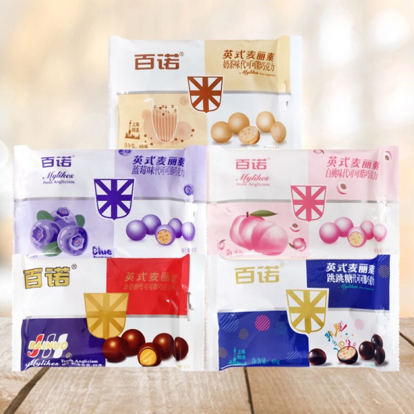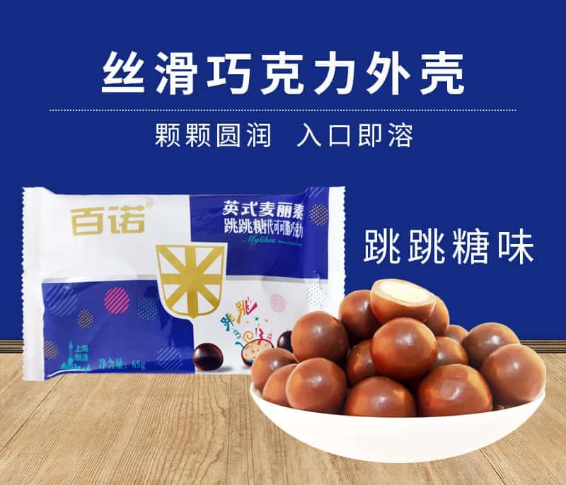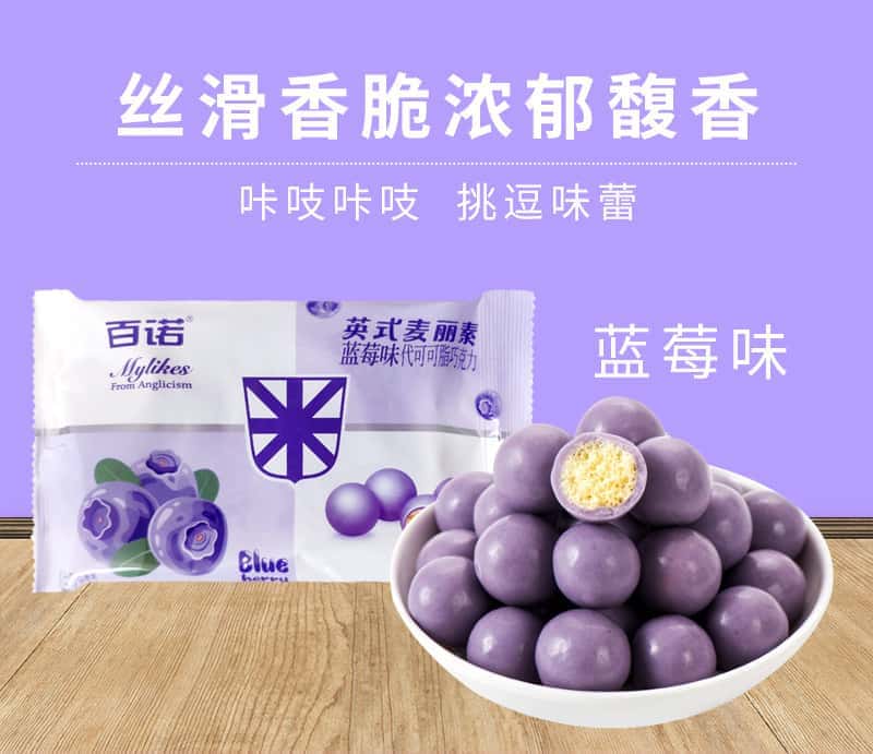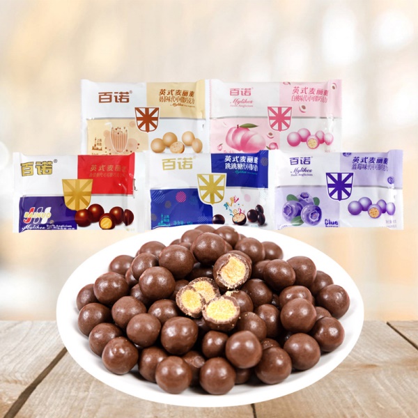 百诺英式麦丽素65克白桃蓝莓奶茶跳跳糖涂层型代可可脂牛奶巧克力