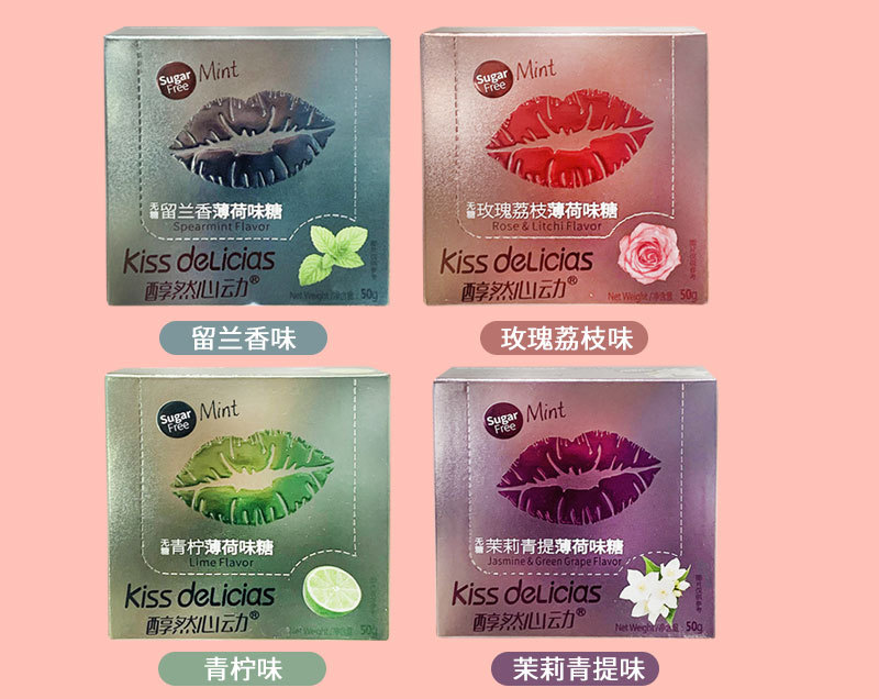 无糖玫瑰荔枝薄荷味糖50g/盒