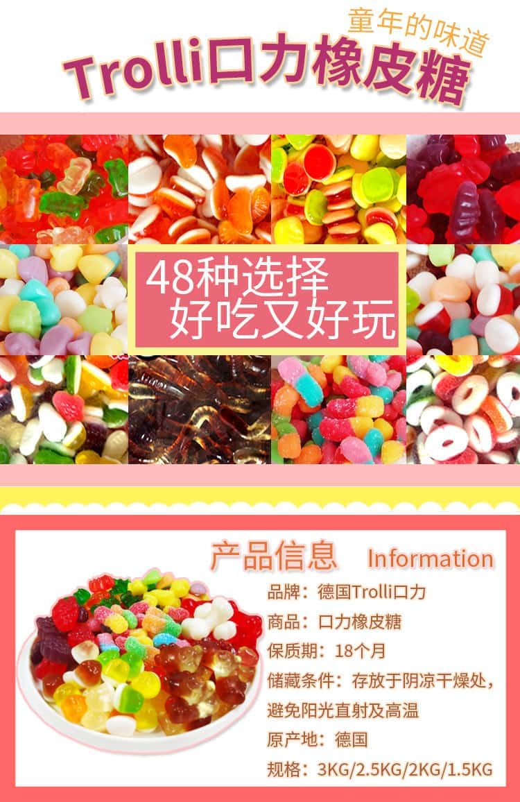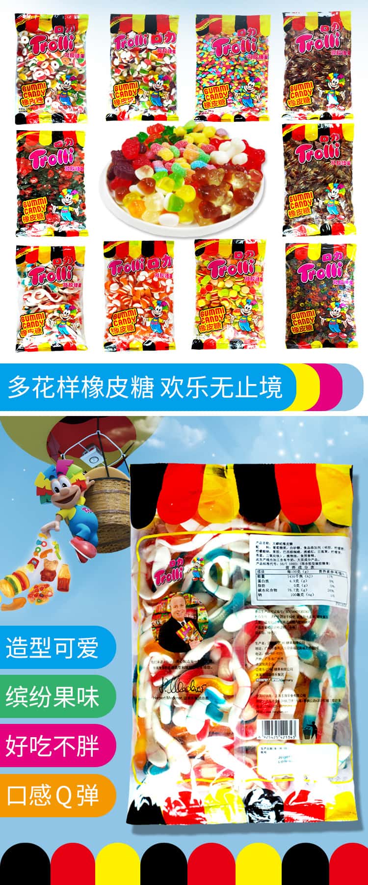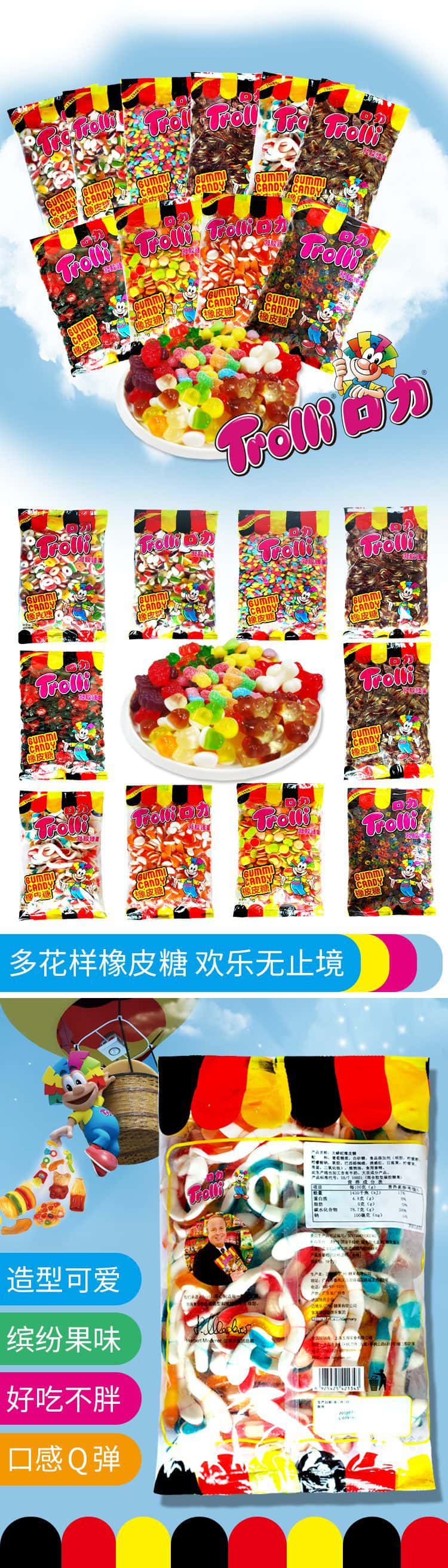 德国品牌trolli口力橡皮糖水果味儿童水果糖果散装果汁QQ软糖喜糖