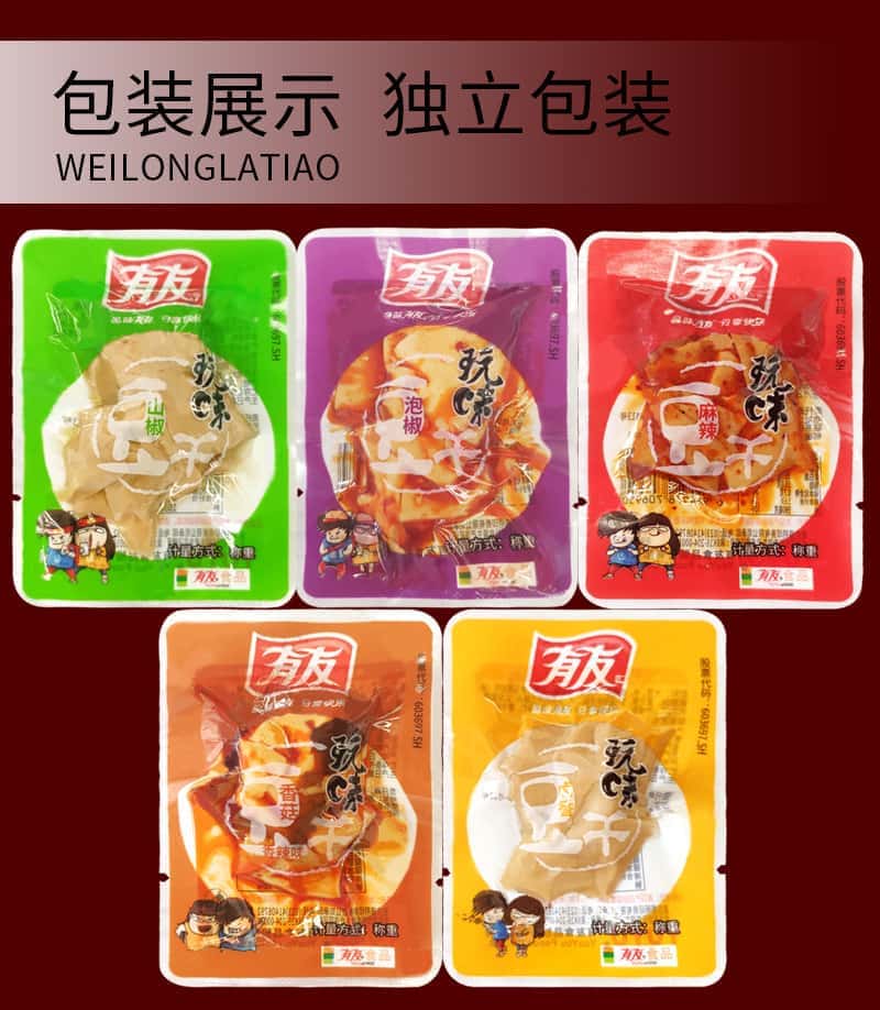 包邮 重庆有友泡椒豆干5斤卤香山椒麻辣零食小包包装玩味豆干