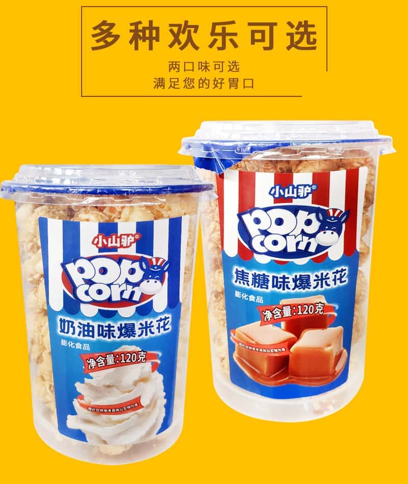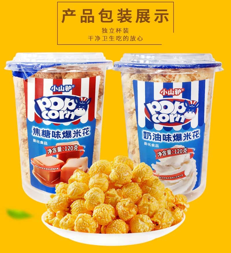 小山驴爆米花120g杯装奶油口味焦糖口味膨化追剧甜酥脆可口零食批