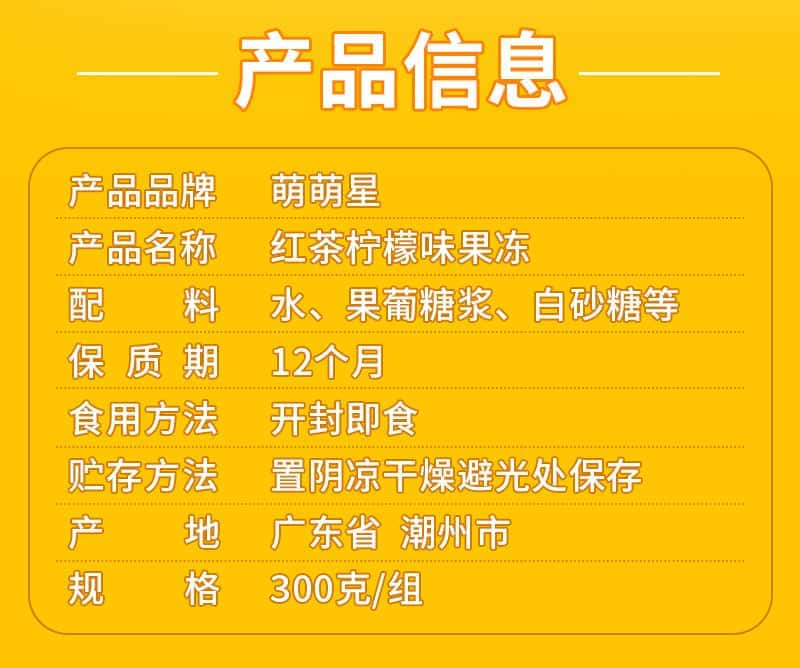 新品萌萌星红茶柠檬味果冻300g/组清凉冰镇凉爽果味果冻布丁