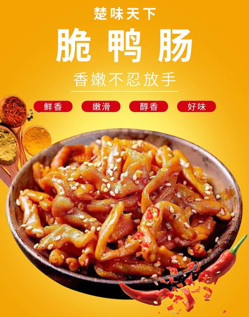 楚味天下 麻辣香辣 脆鸭肠开袋即食休闲类卤味零食散称小包5斤/箱
