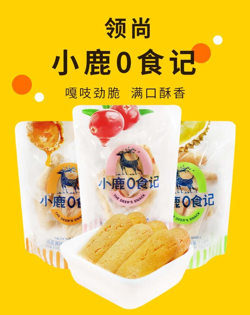 领尚小鹿0食记酥性饼干整箱5斤蔓越莓味咸蛋黄味早餐手指饼干