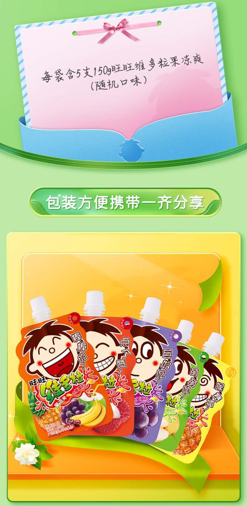 旺旺维多粒果冻爽150g夏季记忆果味果粒儿童休闲零食饮料