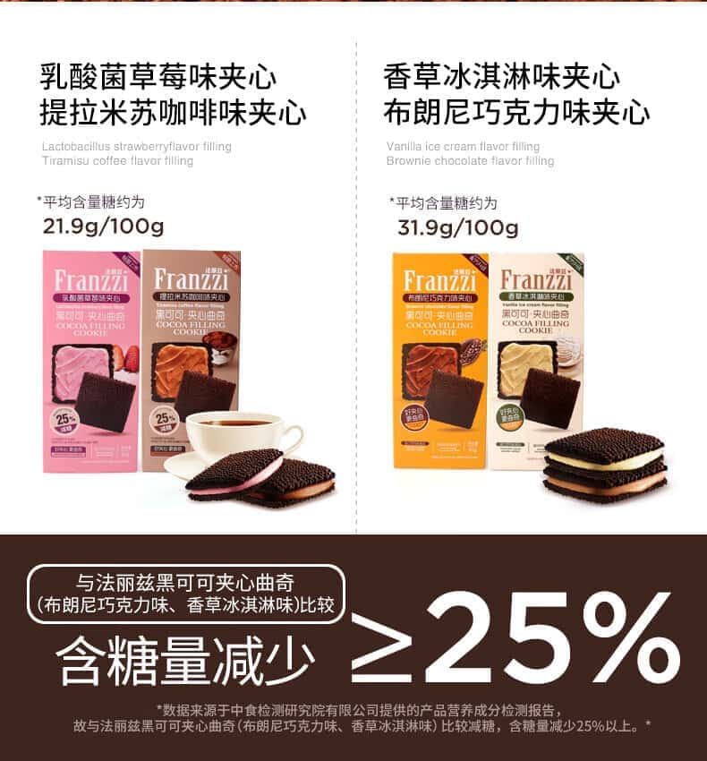 法丽兹70g减糖零食夹心曲奇饼干巧克力网红零食休闲小吃多口味
