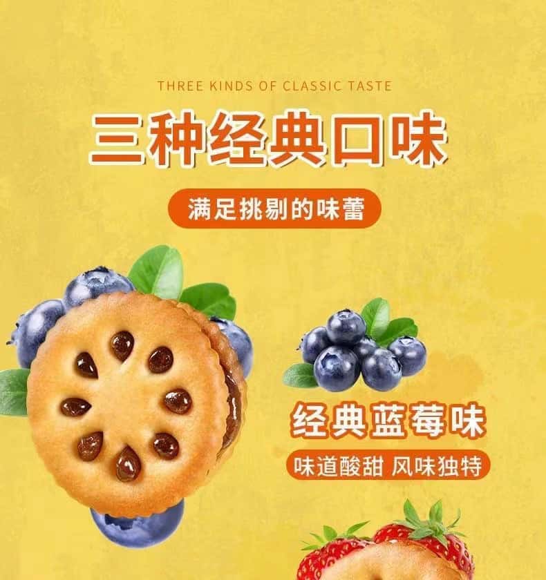 美丹果维鲜90g夹心饼干休闲小吃零食果味浓郁办公室下午茶多口味