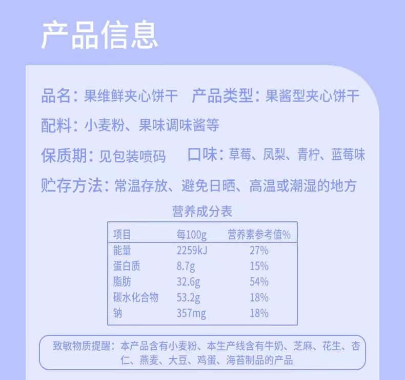 美丹果维鲜夹心饼干90g蓝莓味