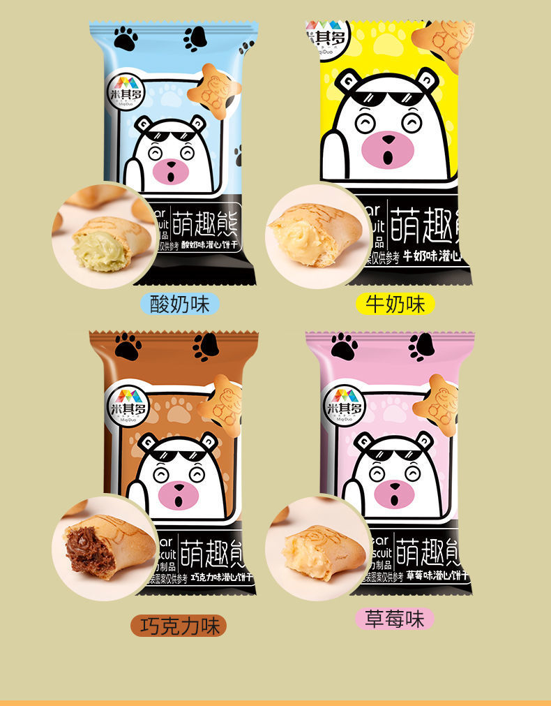 小熊饼干夹心酸奶巧克力草莓多口味注心饼干网红休闲零食批发包邮