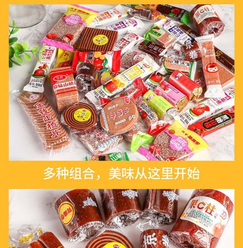 山楂条果丹皮卷山楂卷糕球片干果味系列怀旧零食混装整箱大量批发