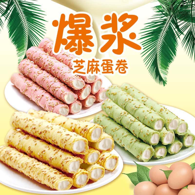 手工鸡蛋卷散装批发地摊整箱爆浆多口味夹心芝麻卷酥网红休闲零食