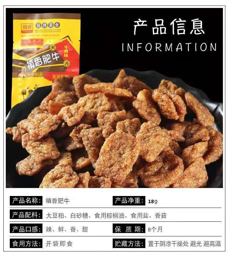 禛香肥牛辣条18g大豆制品素肉儿童怀旧麻辣零食小吃袋装食品批发