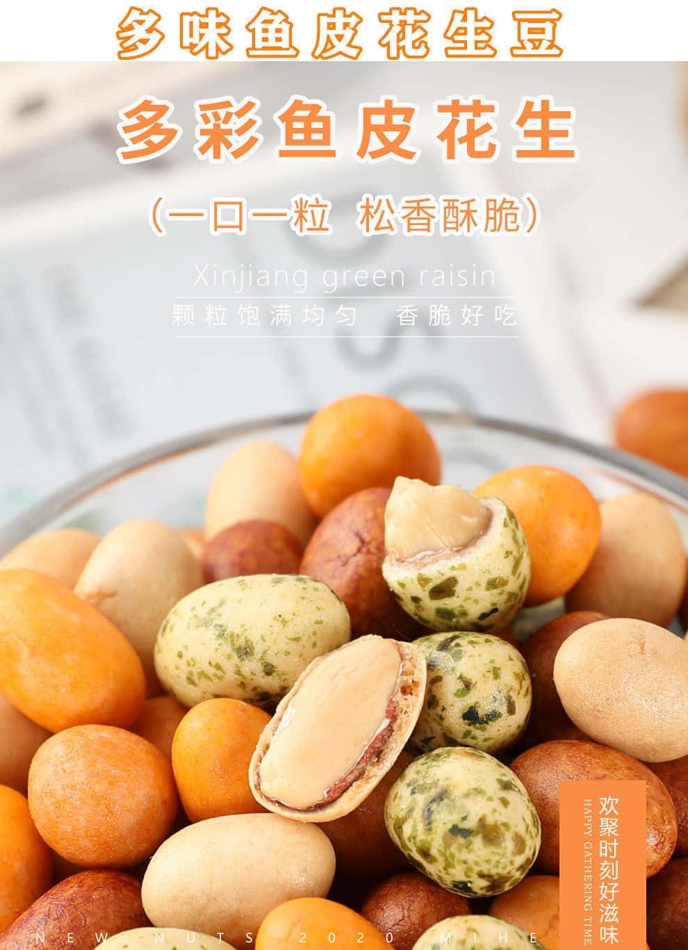 多彩鱼皮花生裹皮花生多味花生海苔花生零食小吃独立包装大量批发