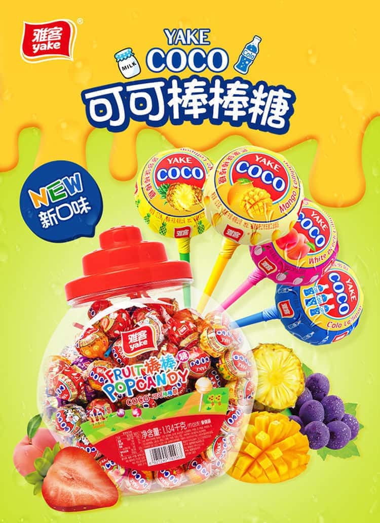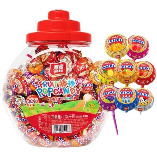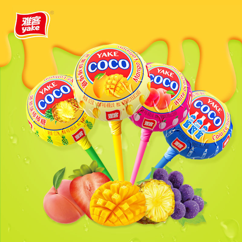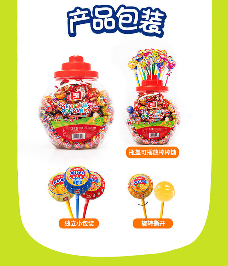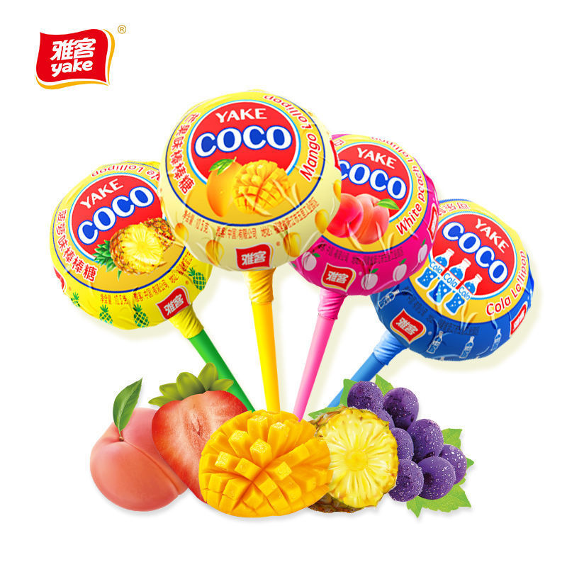 雅客棒棒糖零食网红COCO学生儿童水果软硬糖果桶装小零食大量批发