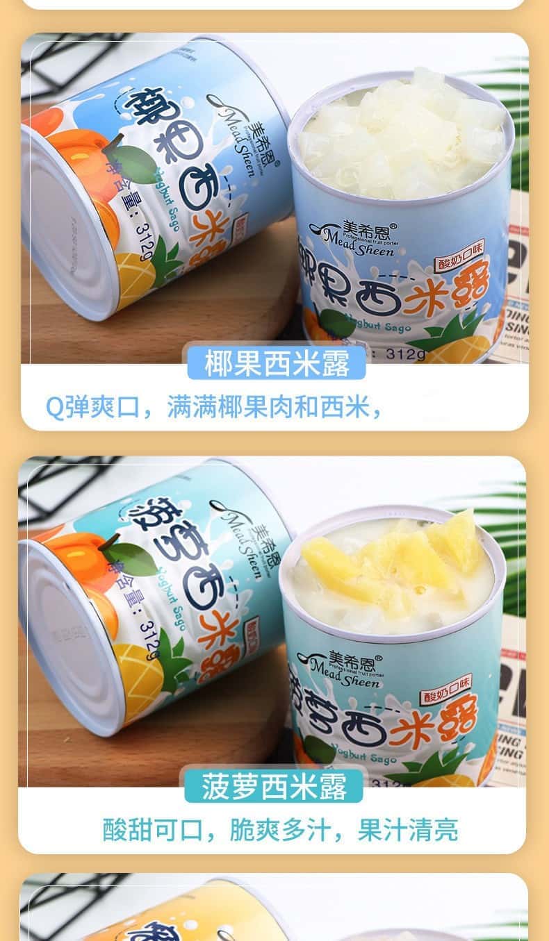 美希恩酸奶西米露罐头水果椰果什锦黄桃罐头混装休闲食品整箱批发