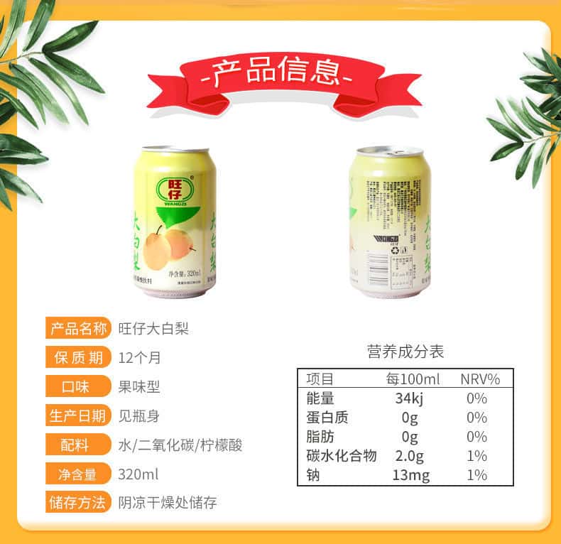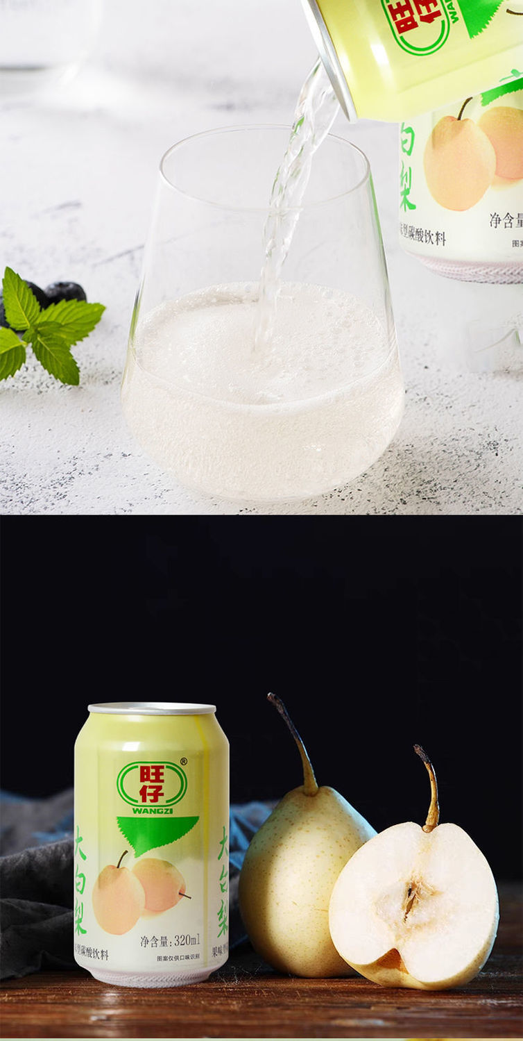 旺仔大白梨汽泡水饮料320ml罐装儿时怀旧休闲老汽水饮品整箱批发