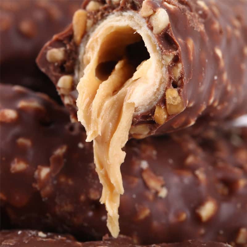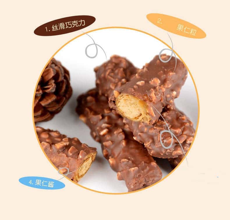 果仁夹心巧克力棒盒装米果酥点心儿童休闲小零食品花生脆大量批发