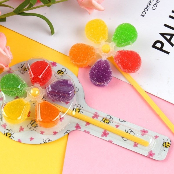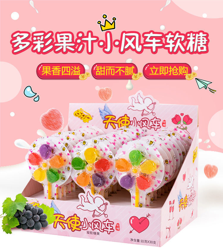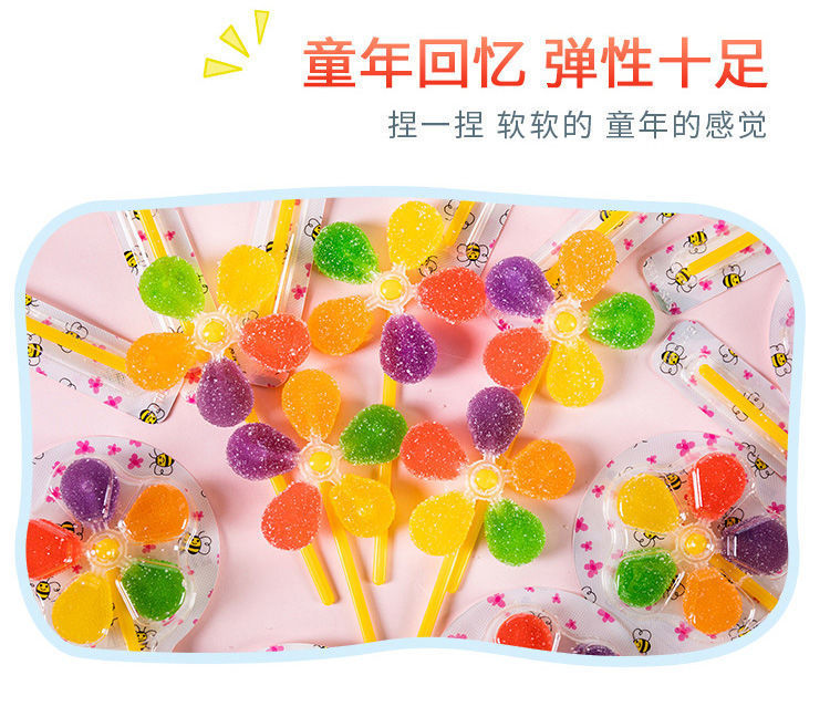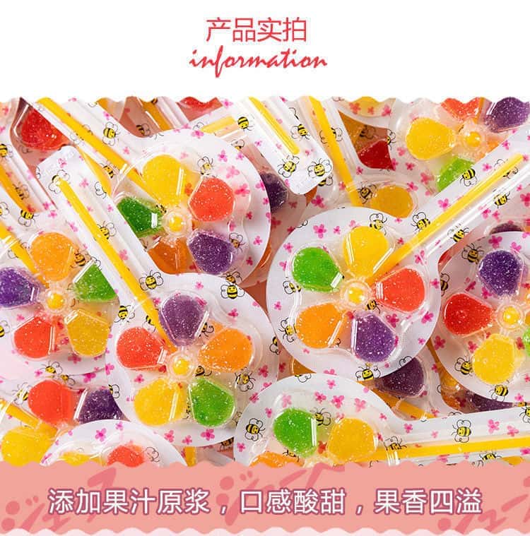 五彩风车软糖盒装网红创意卡通儿童小零食大礼包水果味棒棒糖批发