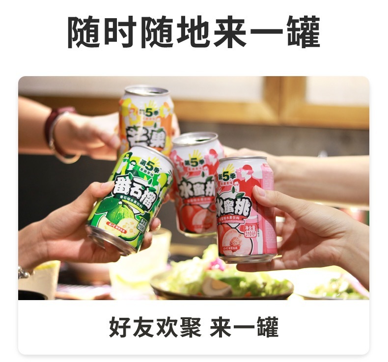 健力宝第五季番石榴果汁饮料批发310ml罐芒果水蜜桃饮品易拉罐装
