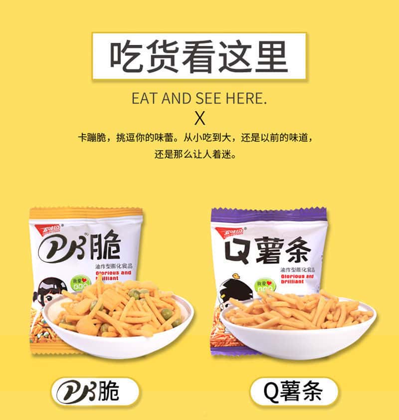 五味园薯条虾条麻辣烫点心堡小卖部怀旧休闲小吃零食食品大量批发