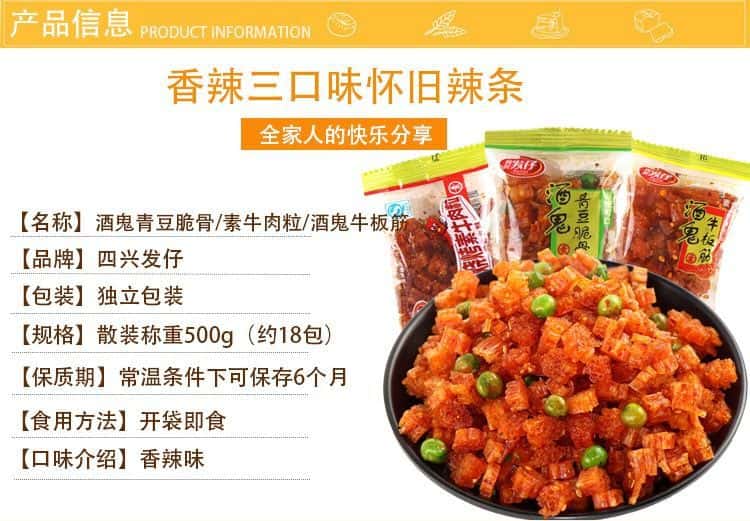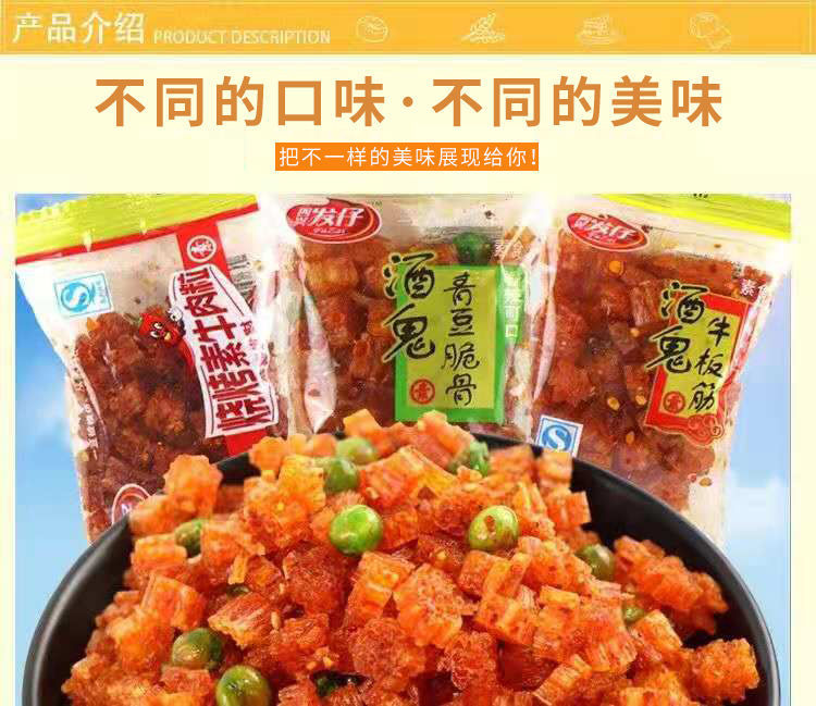 发仔酒鬼青豆脆骨8090怀旧香辣麻辣零食散装网红辣条整箱大量批发